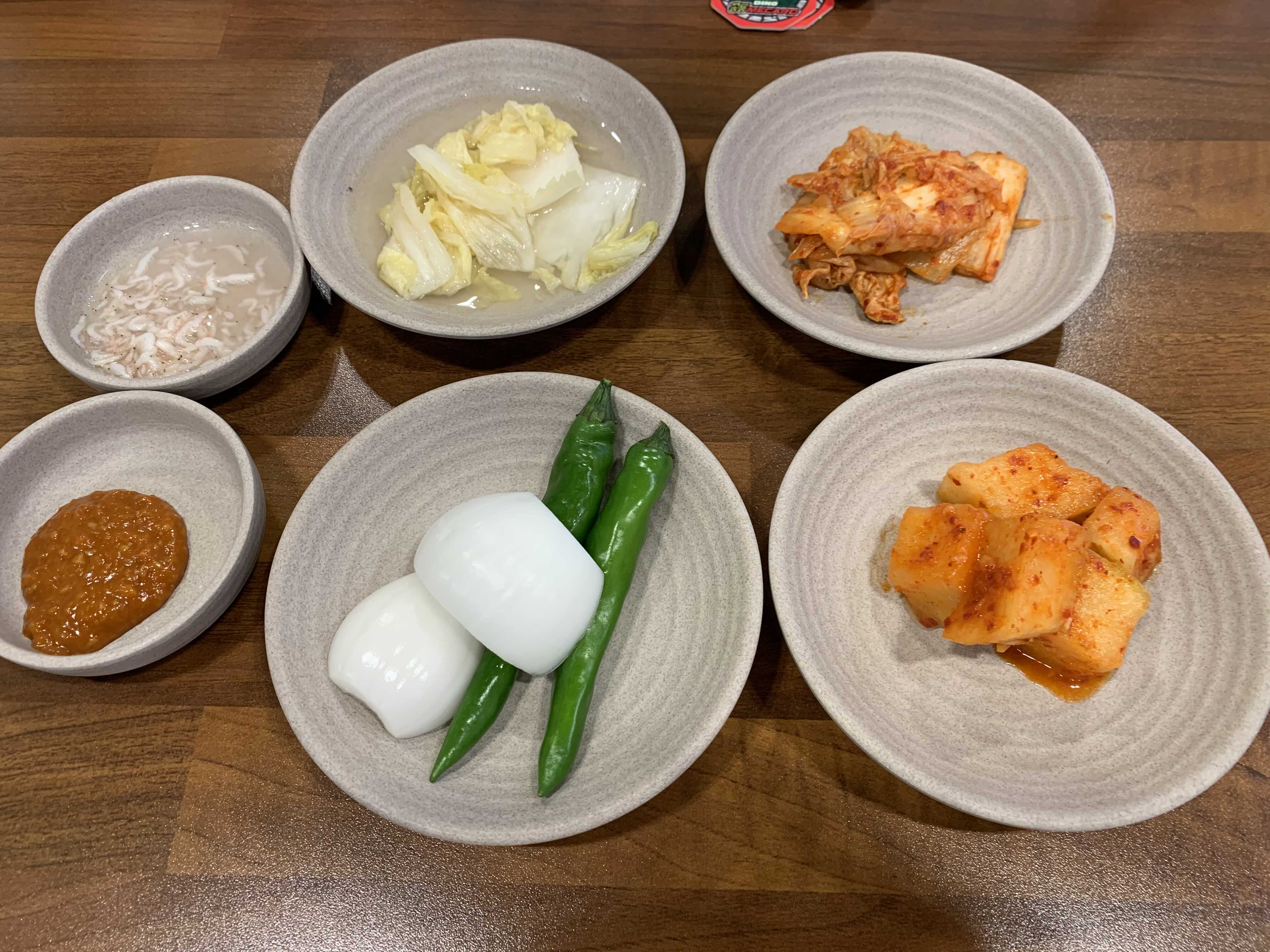 가장 기본이 되는 순대국밥과 오징어순대를 주문하고 기다리니 찬들을 깔아주네요. 순대국 집에 순대국만 맛있으면 되지 찬을 깔아줍니다. 김치 3종류가 나오네요. 백김치, 김치, 깍두기! 아이들과 같이 간 관계로 백김치가 나오니 너무너무 좋네요.