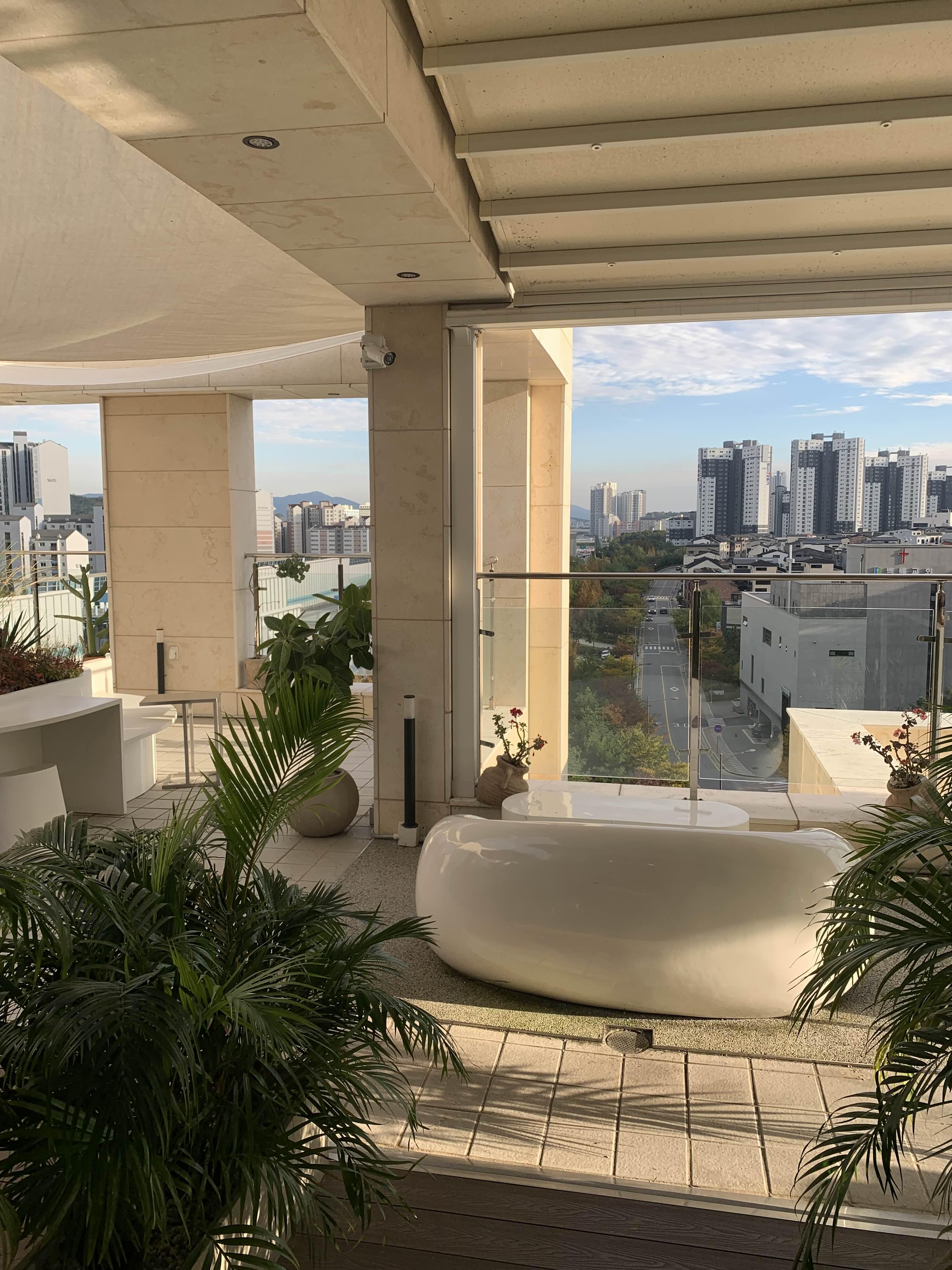 운데 계단을 이용해 위층으로 올라가 봅니다. 시원한 테라스에 뷰가 정말 좋네요.