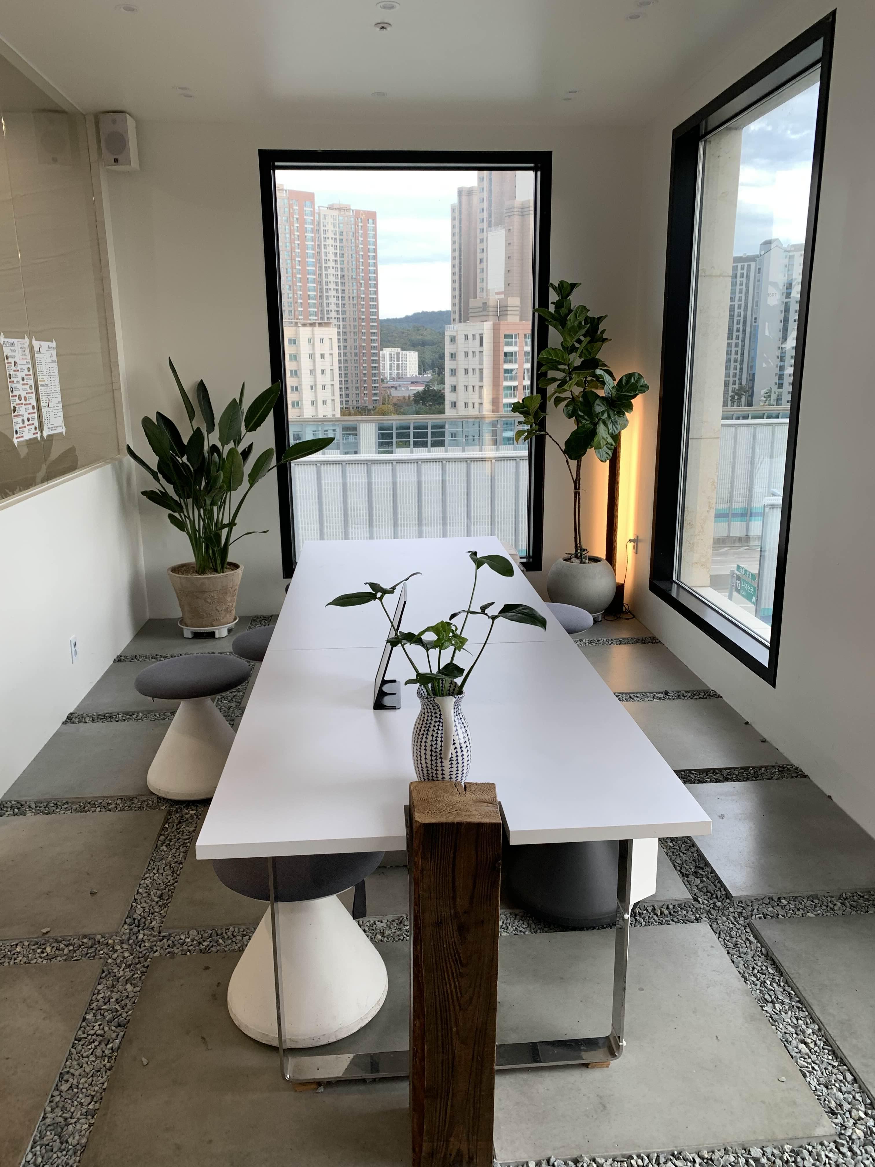 나름 뷰가 좋은 단체석입니다. 의자가 빙글 돌아가니 아이들 여기서 좀 놀았습니다.