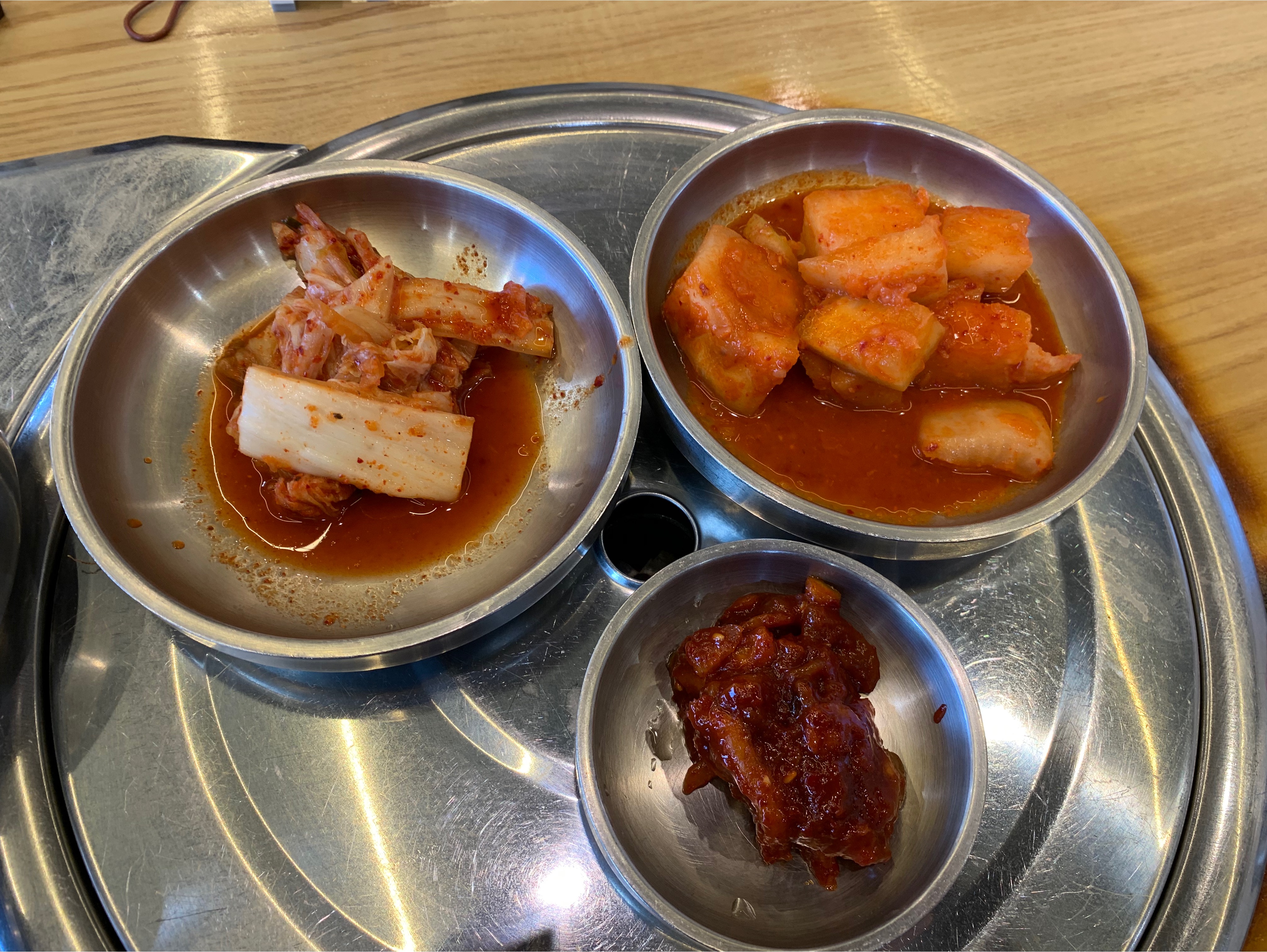 기본 찬으로 김치와 깍두기 세팅 됩니다. 거기에 낙ㅈ젓갈인지 오징어 젓갈인지 추가로 나오네요.