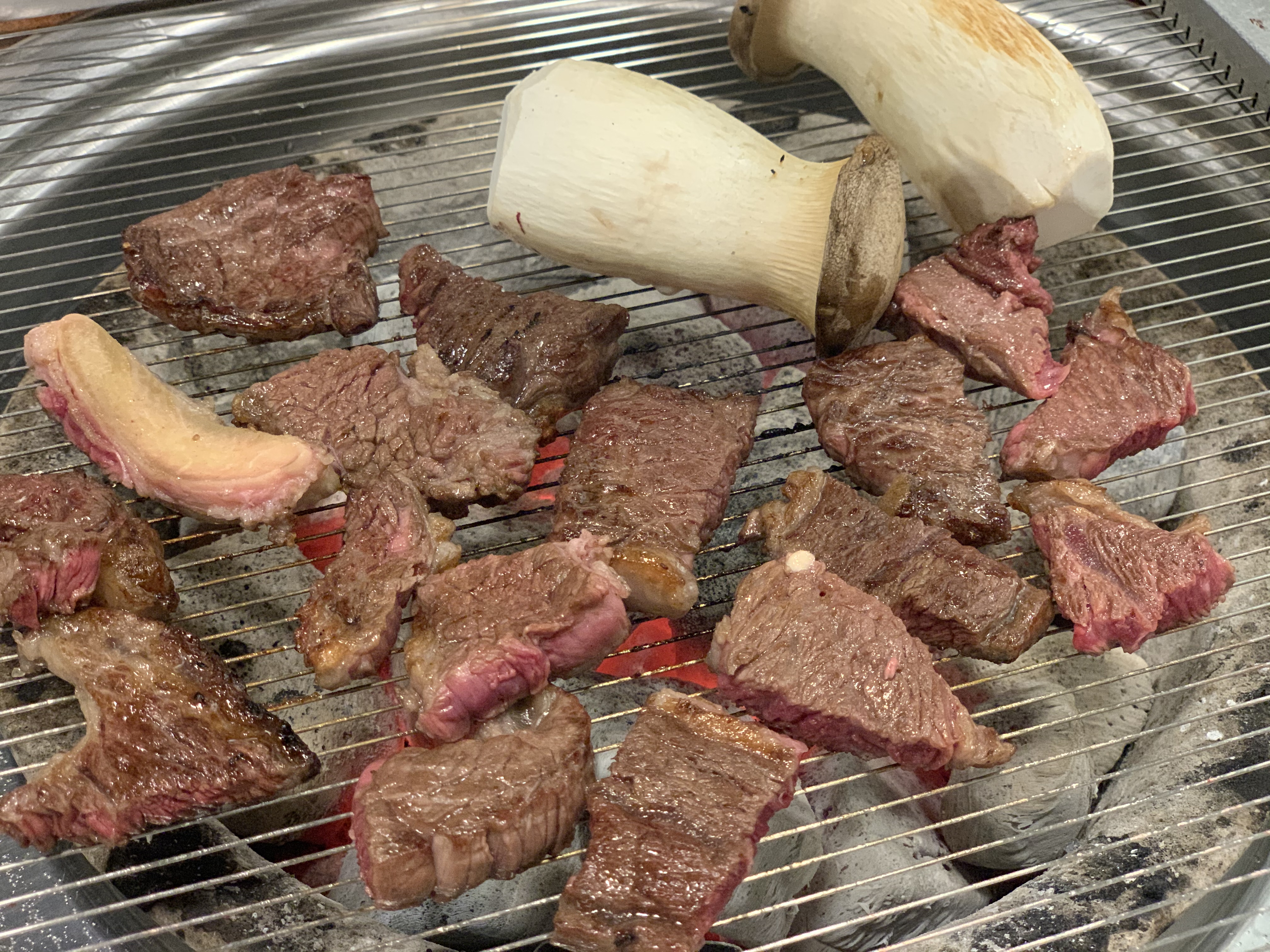 숯이 좋으니 타지 않게 잘 뒤집어서 구워주면 맛난 등심구이 완성!