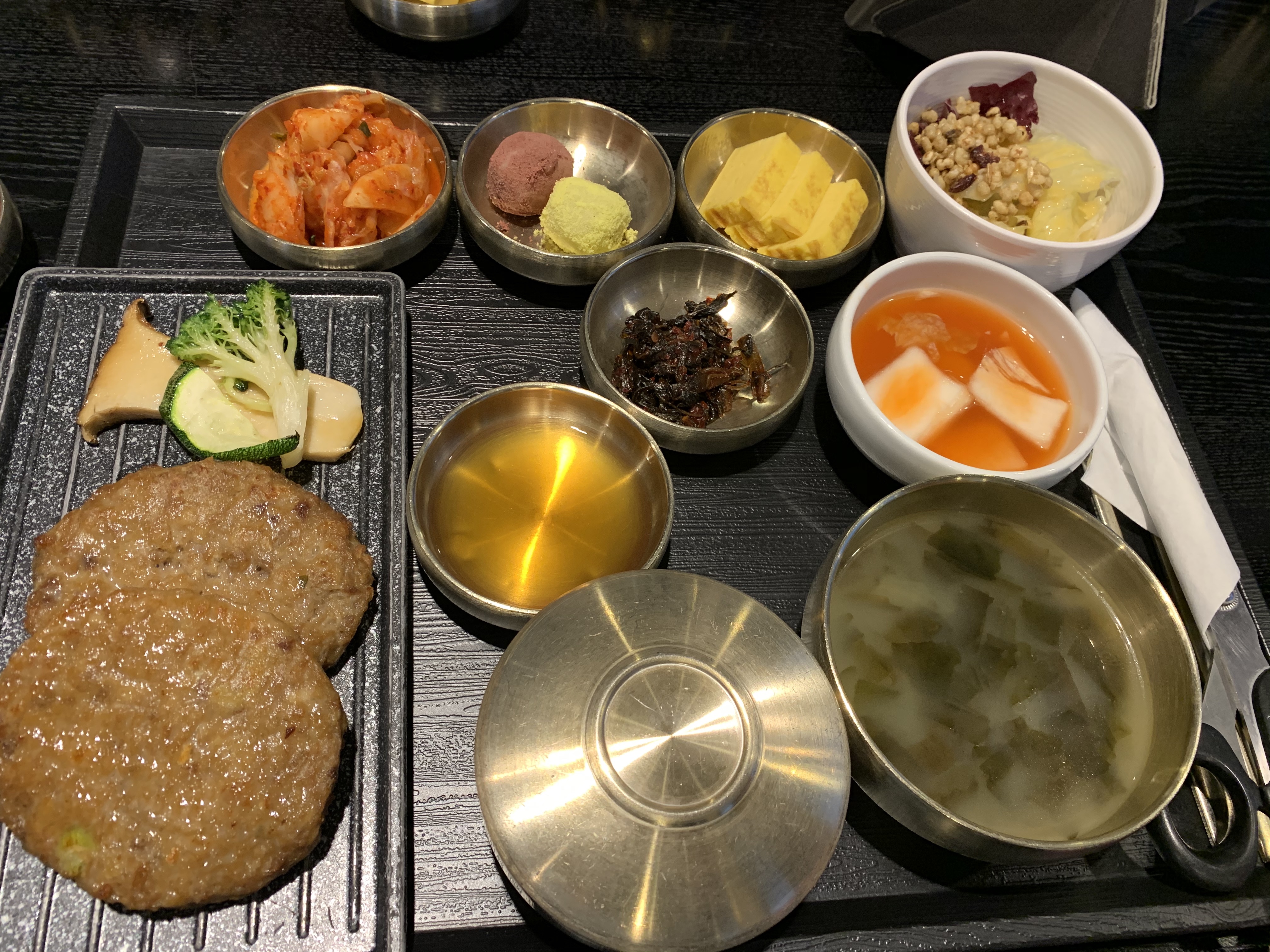 BBQ 이외에 주문할 수 있는 메뉴들은 식사류와 탕류, 전골류 등이 있었어요. 저희는 아이들이 있는 관계로 "떡갈비와 구운채소 밥상"과 "삼겹살 묵은지 전골"을 주문 했답니다.