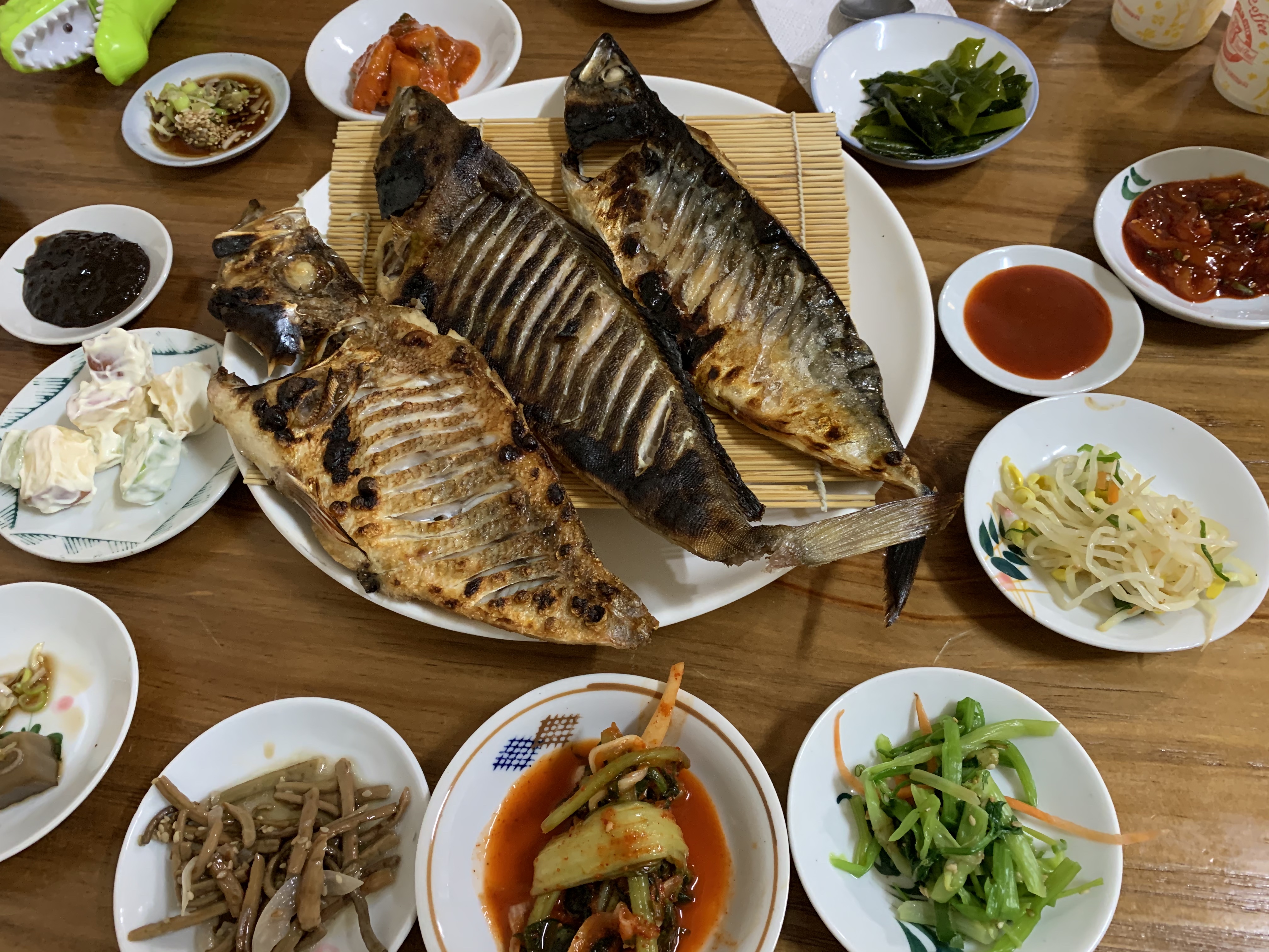 바삭하니 노릇노릇하게 잘구워져 나왔네요. 고등어, 임연수 등 3가지 생선이 나오네요. 3인 이상인 경우 갈치 등 다른 생선이 추가되는 듯 합니다.