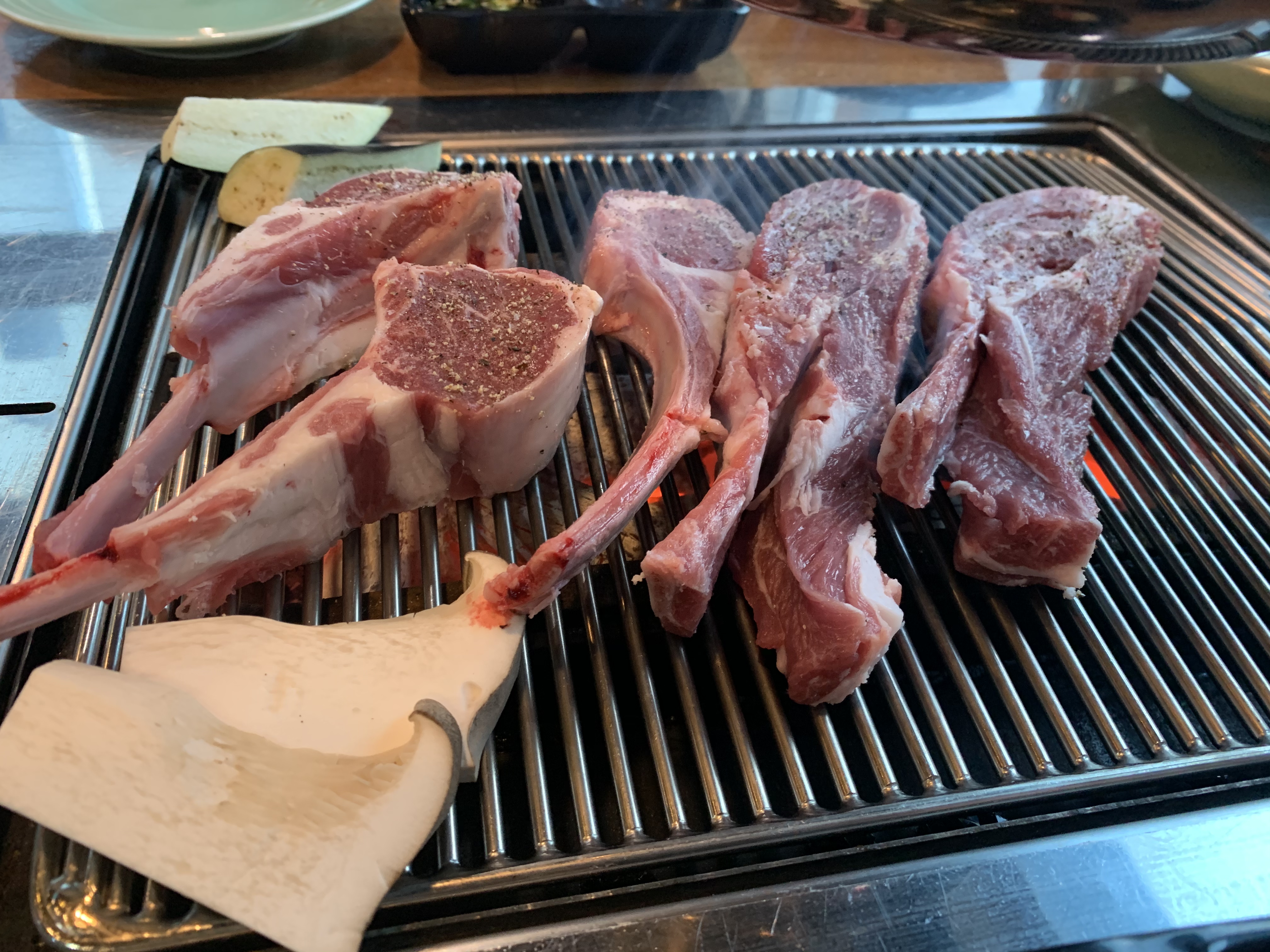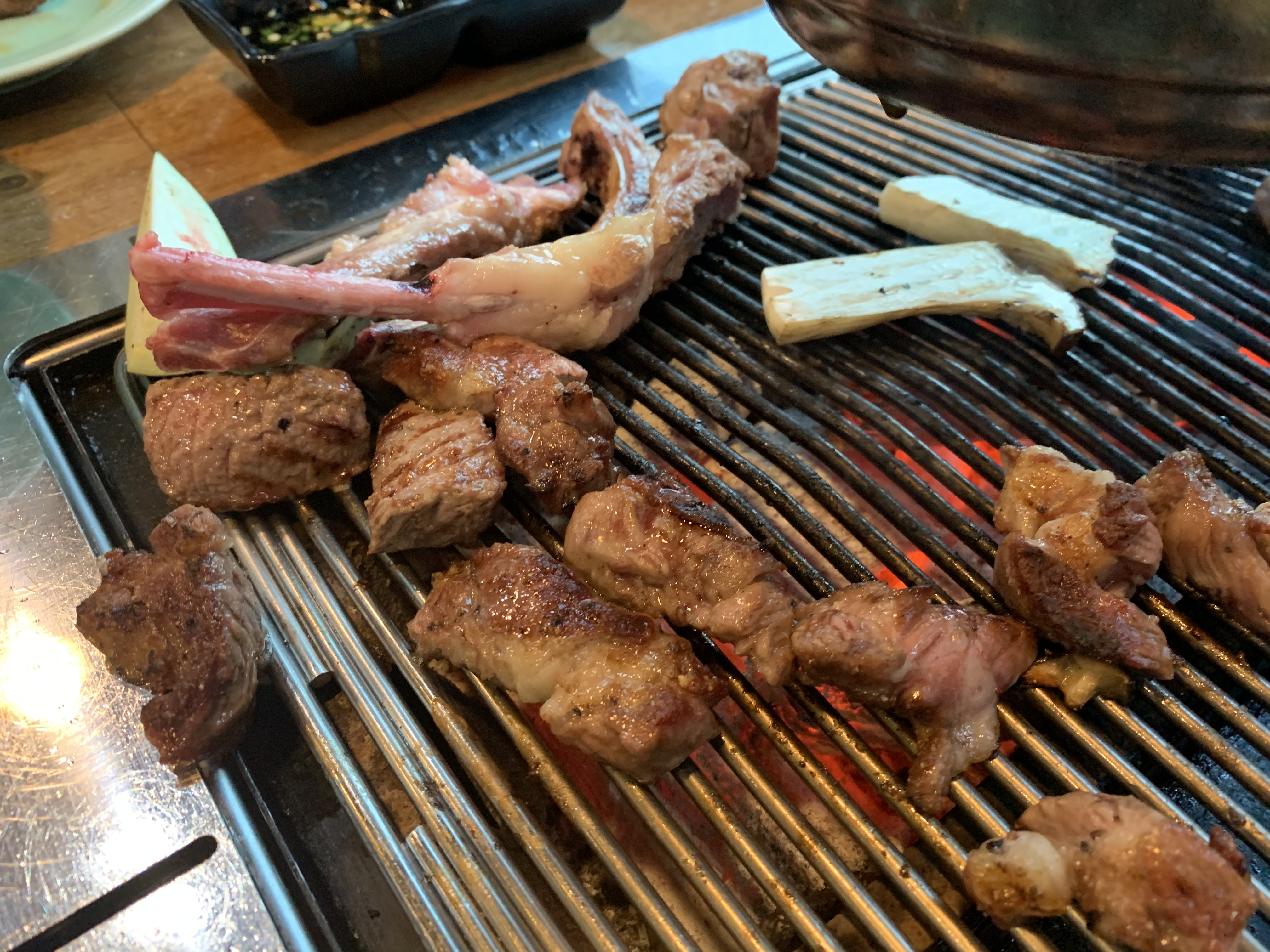 노릇노릇 숯불에 잘 구워진 양고기는 소고기보다 훨씬 맛있답니다. ^^ 너무 바싹 구우면 고기가 질겨지니 속이 촉촉하게 앞뒤로 구워 잽싸게 먹여줘야 합니다. 어린 양고기라 고기가 부드럽고 잡내가 없어 훌륭합니다.