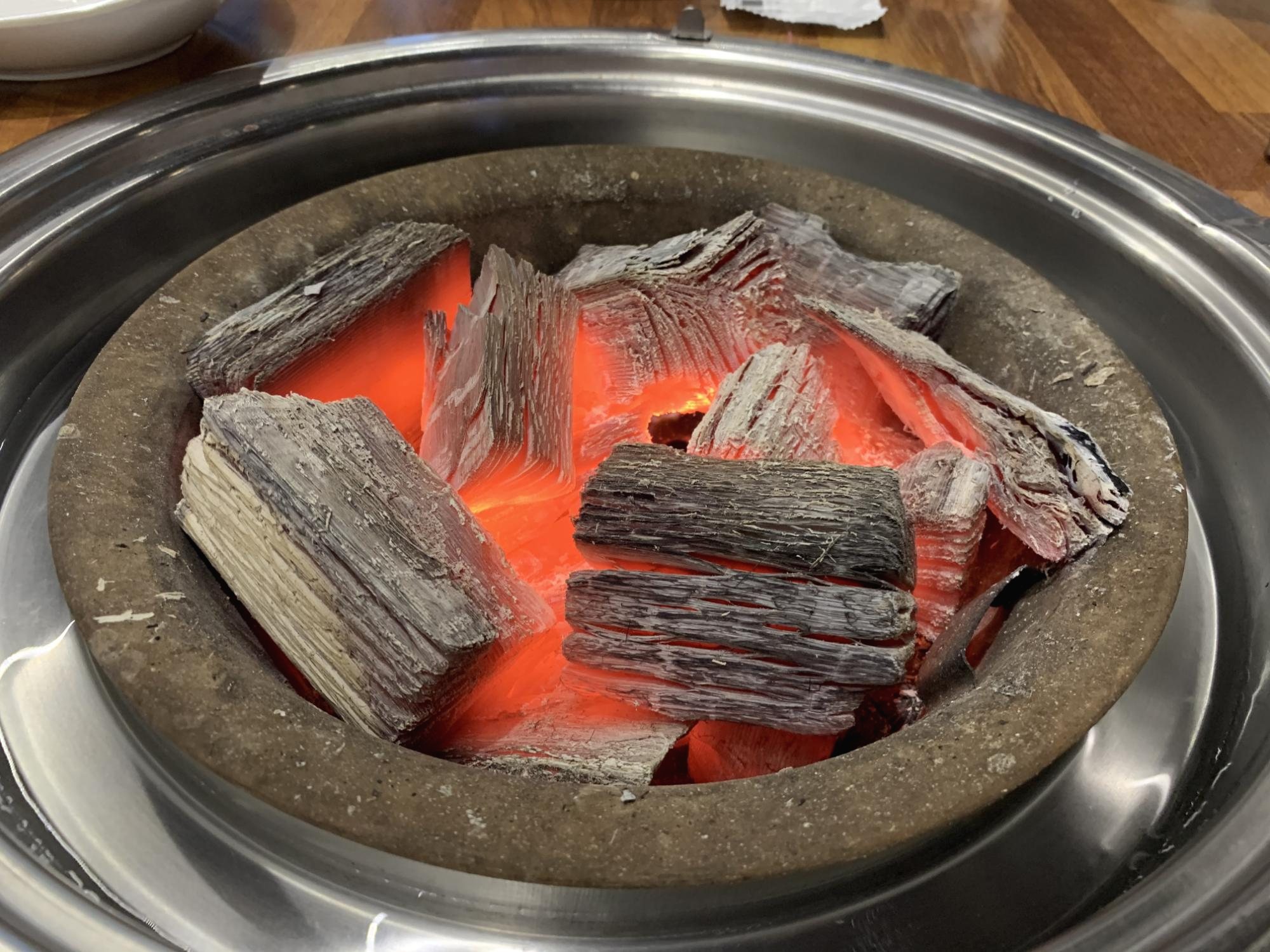 숯이 정말 좋죠? 숯이 좋아서 고기가 더 맛있는지도 모르겠네요. 저녁이 되니 좀 쌀쌀해 졌는데 숯을 올려놓으니 얼굴이 후끈후끈합니다. 더운데 소주도 한병 시켜야죠. ㅎ