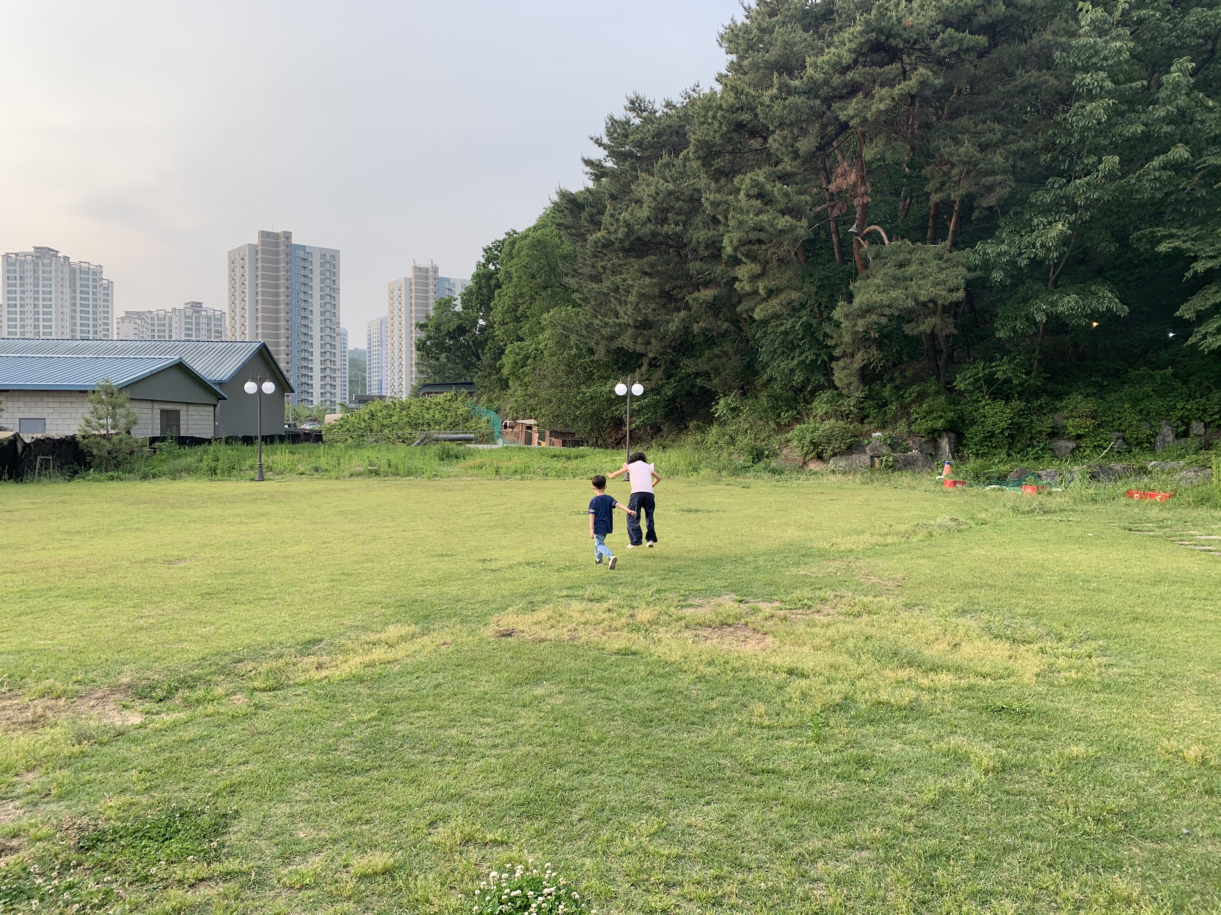 웨이팅 시간 동안 뒷마당 잔디밭에서 아이들과 술래잡기를 하면서 시간을 보냈습니다. 오른쪽 끝에는 작은 연못도 있어서 아이들 있는 집은 안전에 주의를 하셔야 할거 같습니다.