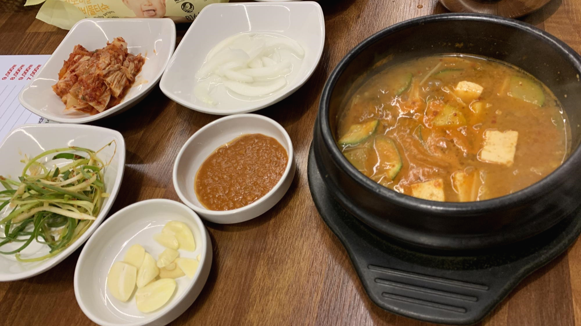 된장찌개를 추가로 주문했어요. 된장찌개가 맵지 않아 두부를 건져 밥과 주면 우리 아이들 정말 잘먹거든요. 고기가 익기전에 먹을것들을 챙겨주고 이제 본격적으로 고기를 구워보겠습니다.