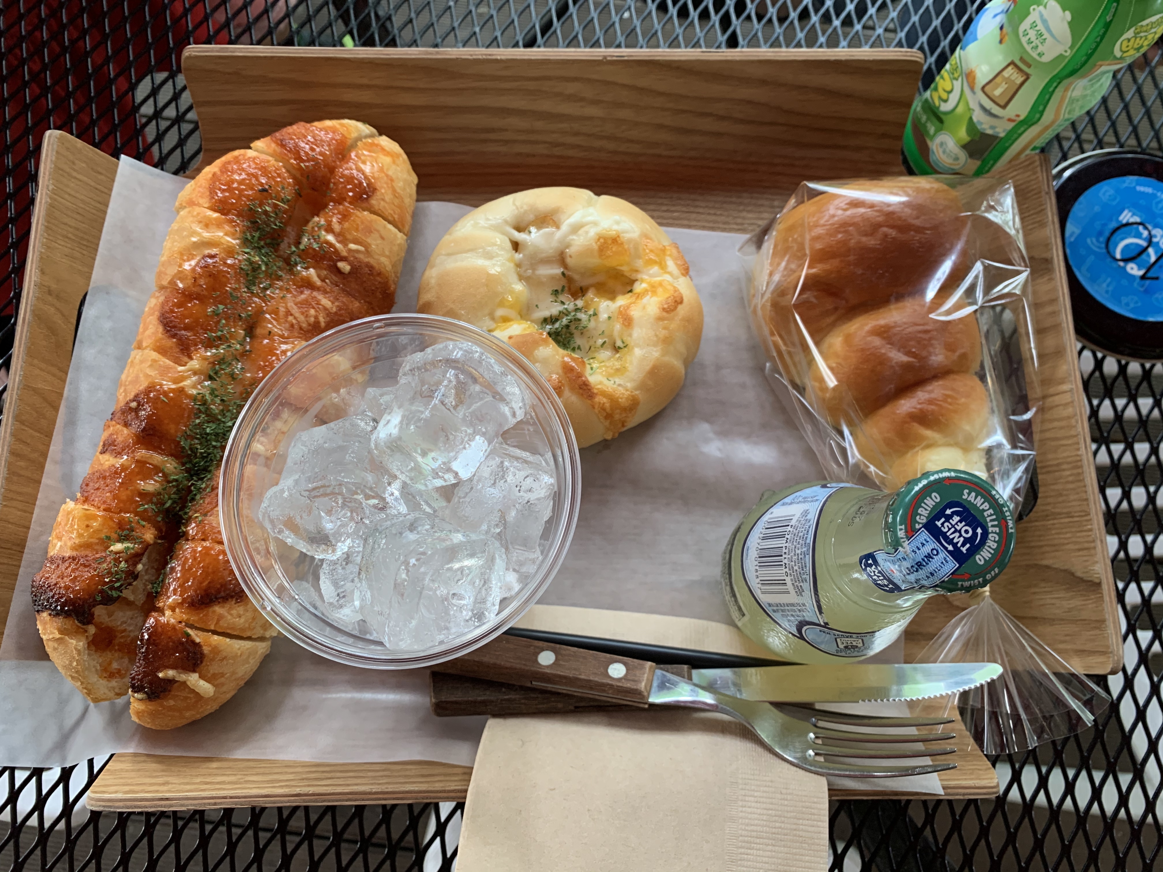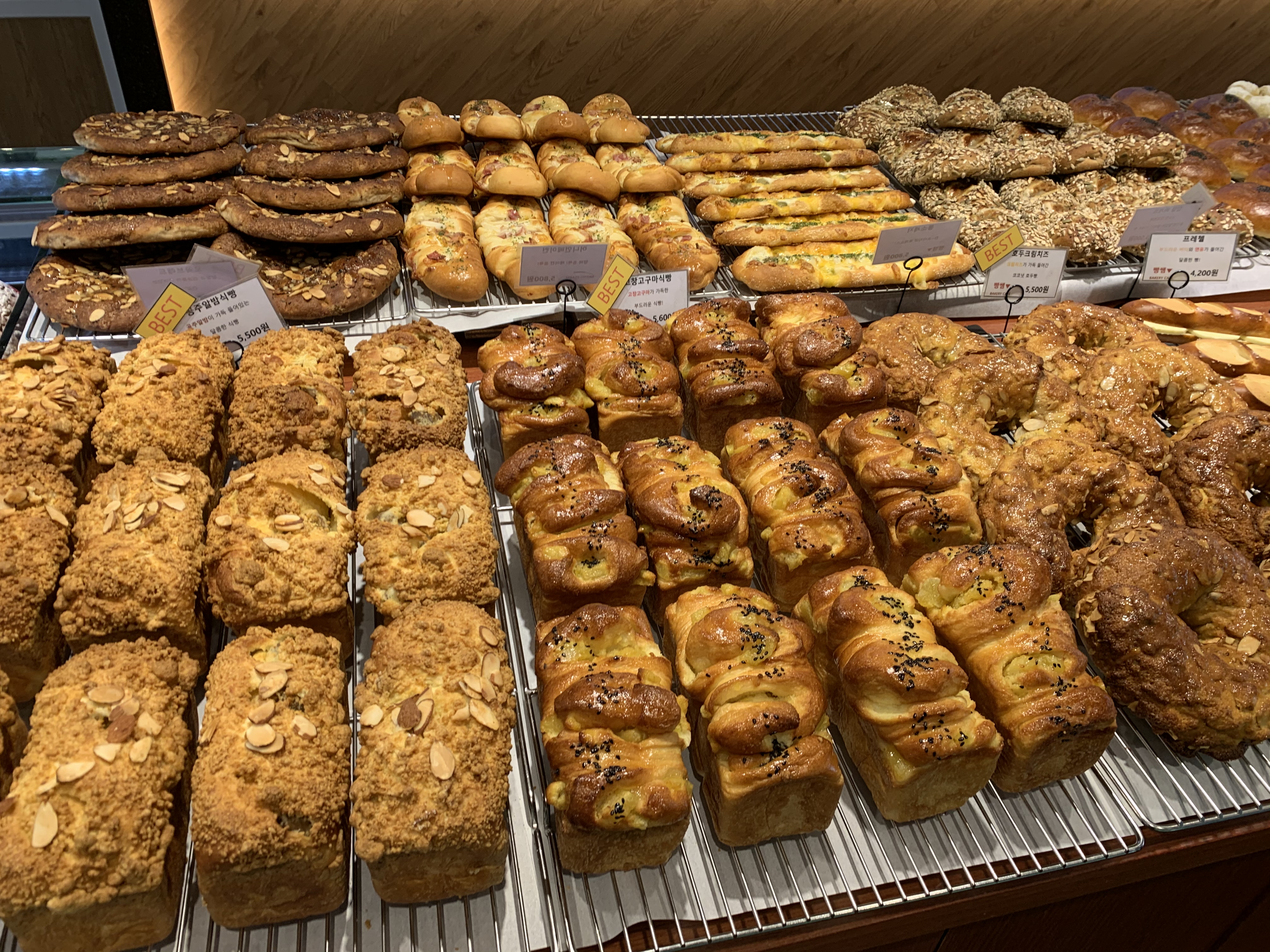 빵이 종류가 많아 뭘 골라야 할지 고민됩니다. ㅎㅎ 그래도 가장 좋아하는 명란바게트와 감자치즈 빵을 골랐어요.