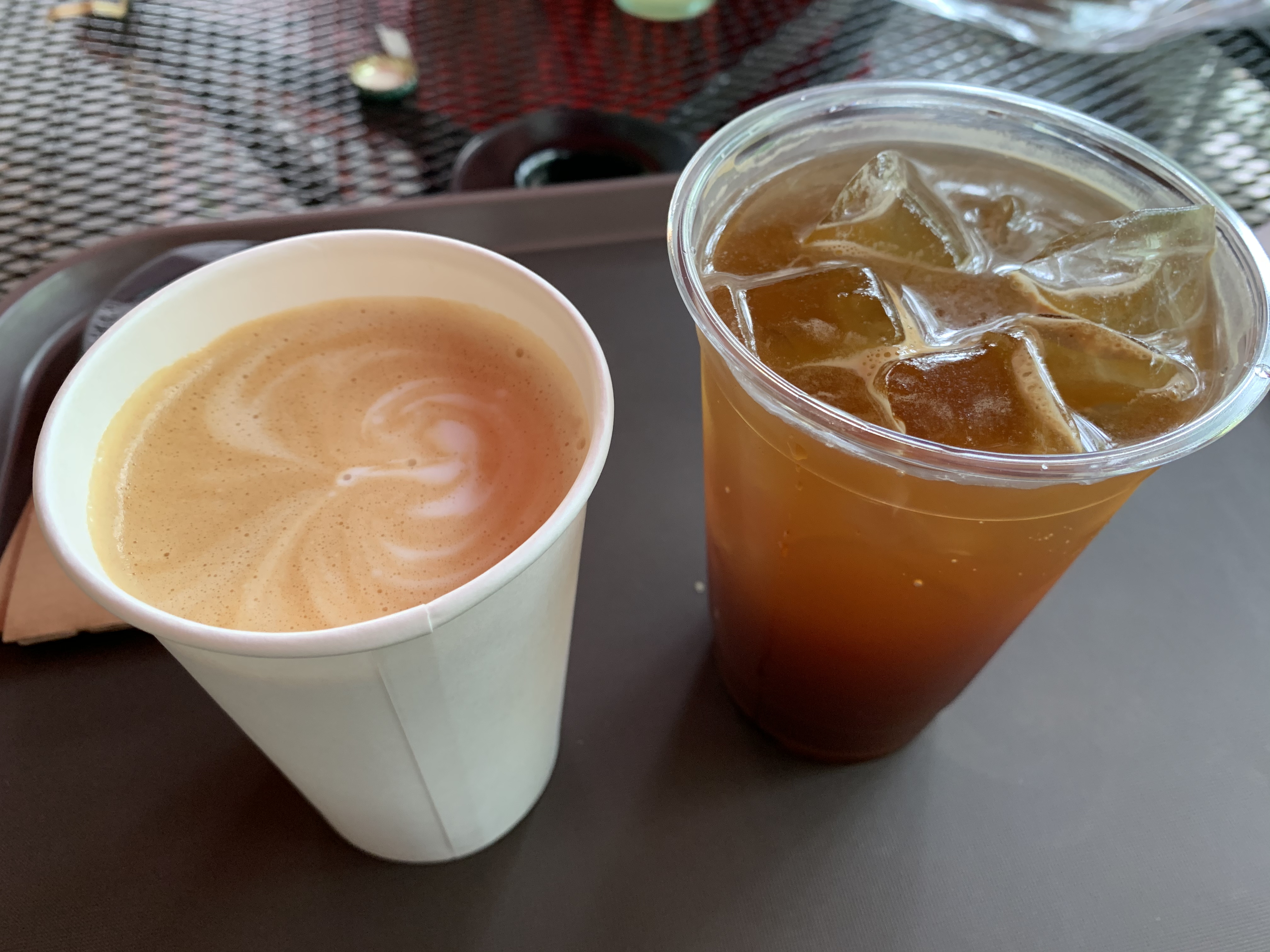 실내 공간도 좋지만 역시 테라스 공간이 가장 인기가 있어요. 테라스에 자리를 잡고 주문을 해봅니다. 아이들은 뽀로로 음료수 하나씩 쥐어 주고 저희는 아아와 아라를 주문했어요.