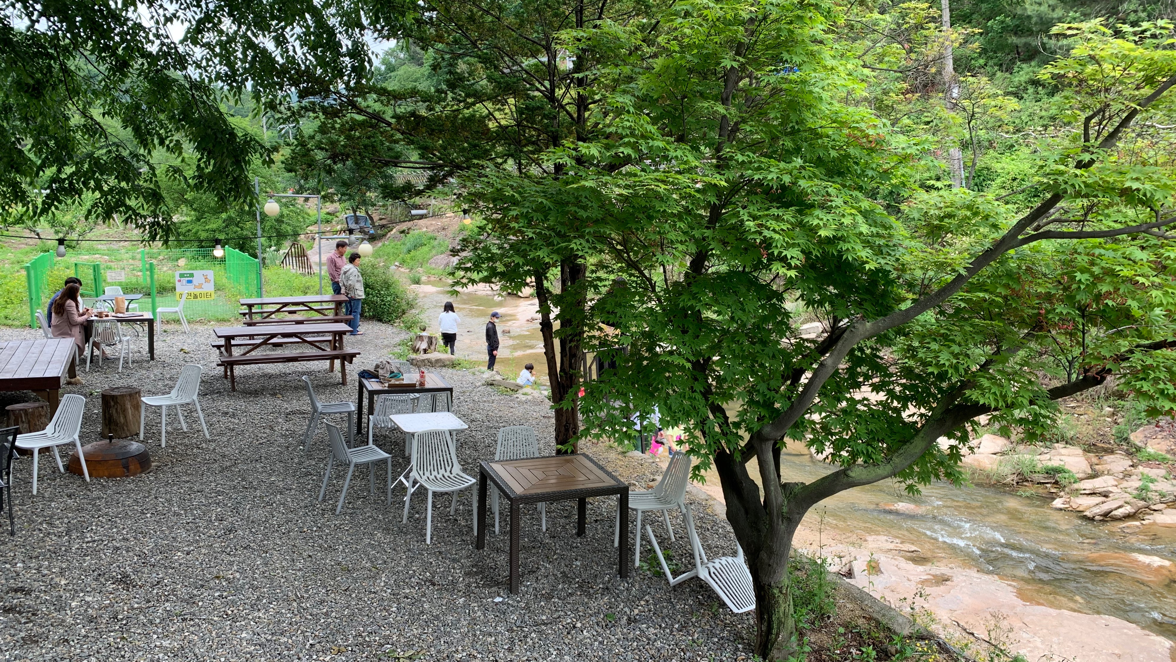 날씨가 많이 더워졌어요. 이제 본격적인 여름 시작인가봐요. 아래로 바로 계곡물이 흐르니 아이들 물놀이 하거나 시간 보내기 좋은 장소입니다. 1층 야외 테이블에서 아이들 노는거 지켜보며 여유로운 시간을 즐겨요. 강쥐 놀이터도 있으니 동행하시는 분은 이곳을 이용하는 것도 좋을거 같네요.
