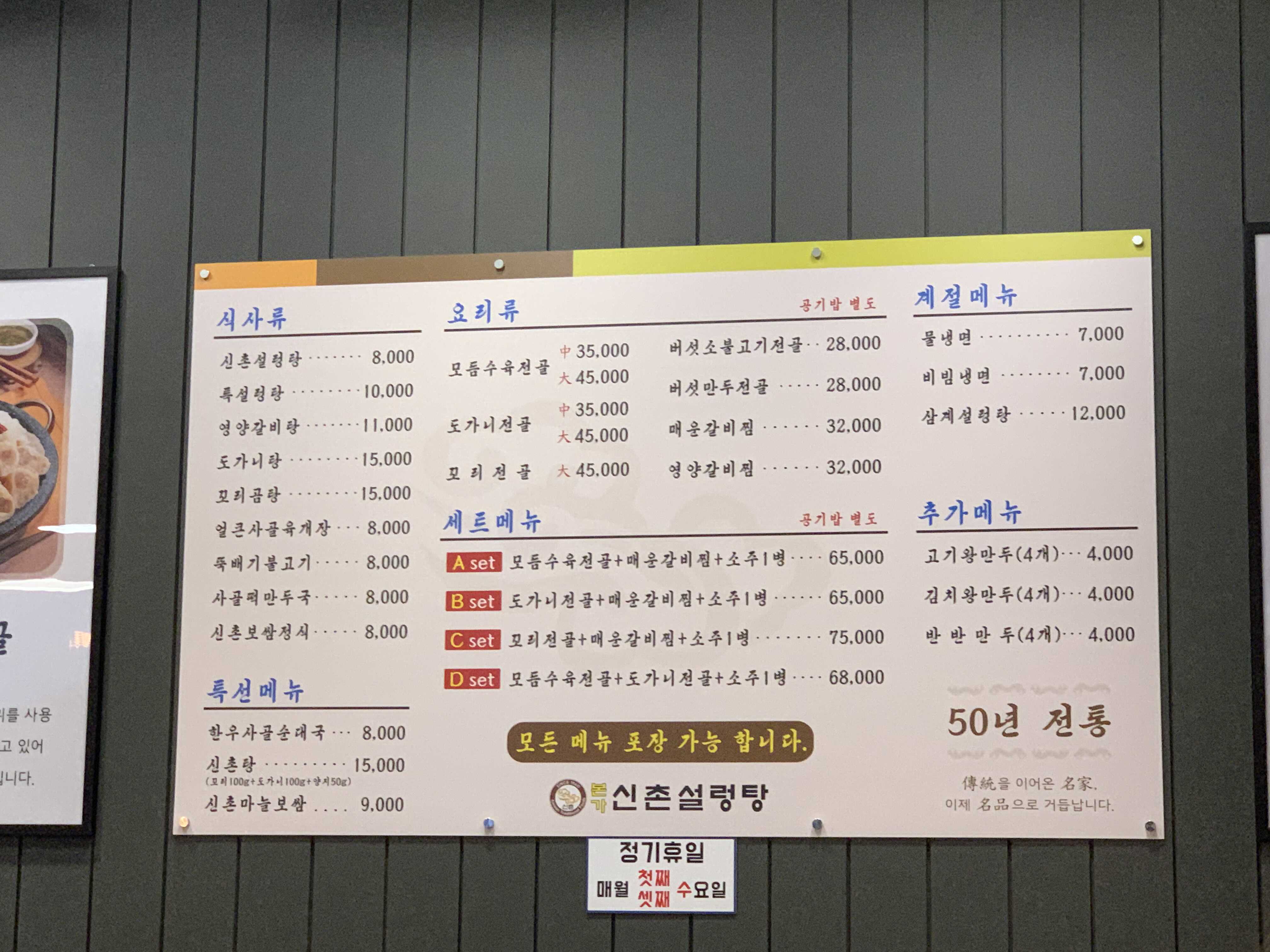 저희는 주로 신촌설렁탕이나 특설렁탕에 신촌보쌈정식을 추가해서 먹는 답니다. 여기 보쌈이 정말 맛있어요.ㅎ 다음에는 수육전골에 소주 한잔하고 싶네요.