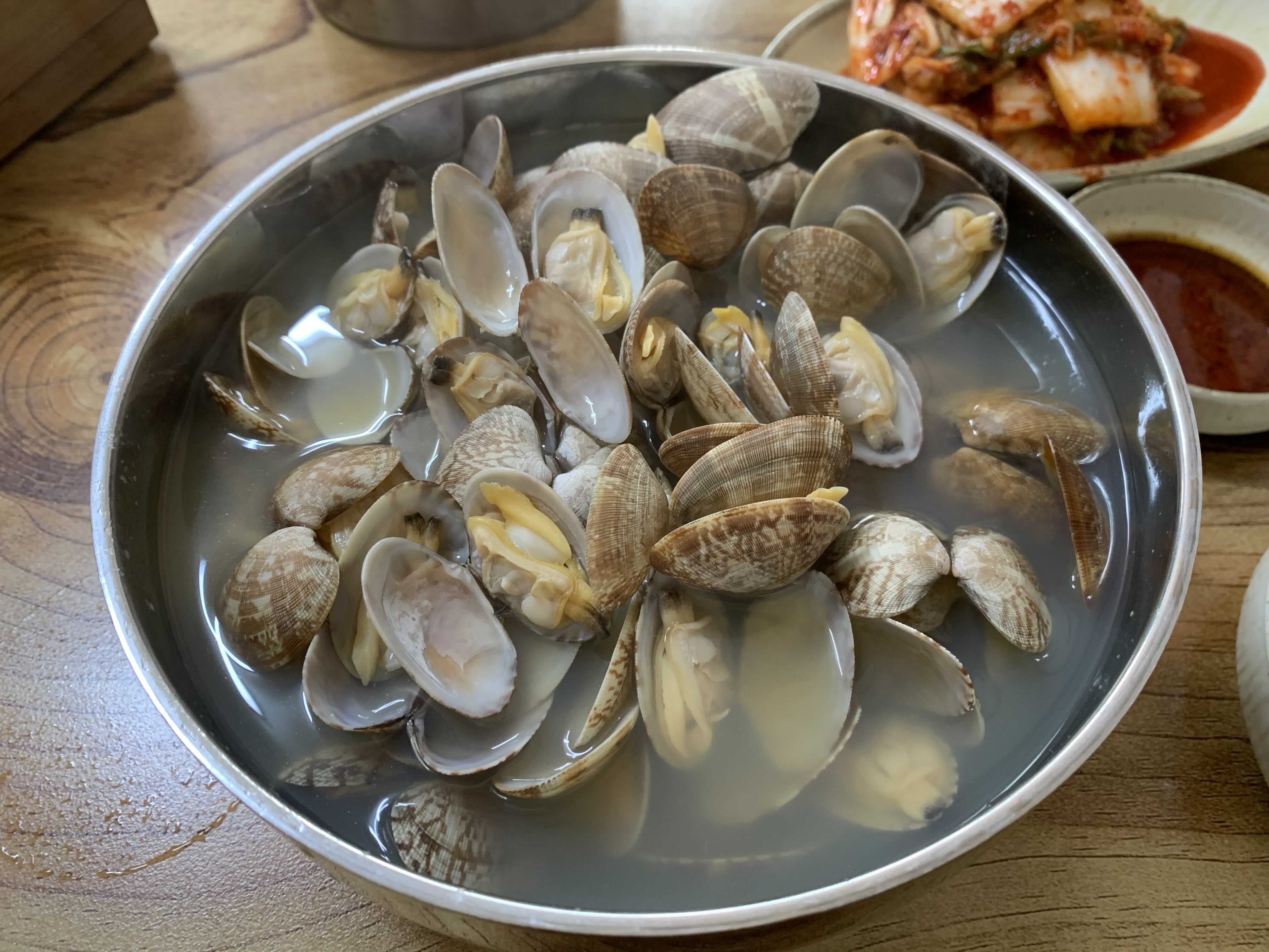 처음 칼국수가 나왔을때 어마어마한 바지락 양에 놀라고 시원 칼칼한 국물에 한번 더 놀라게 되네요. 칼국수가 이정도 인데 바지락 탕은 어마어마할거 같습니다. ㅎ 국물이 약간 매운맛이 있어서 아이들은 물에 씻어 줬는데 잘먹네요 ㅎㅎ 국물에 밥말아 먹고 싶은데 공기밥은 별도로 판매하지 않아서 아쉬웠습니다.