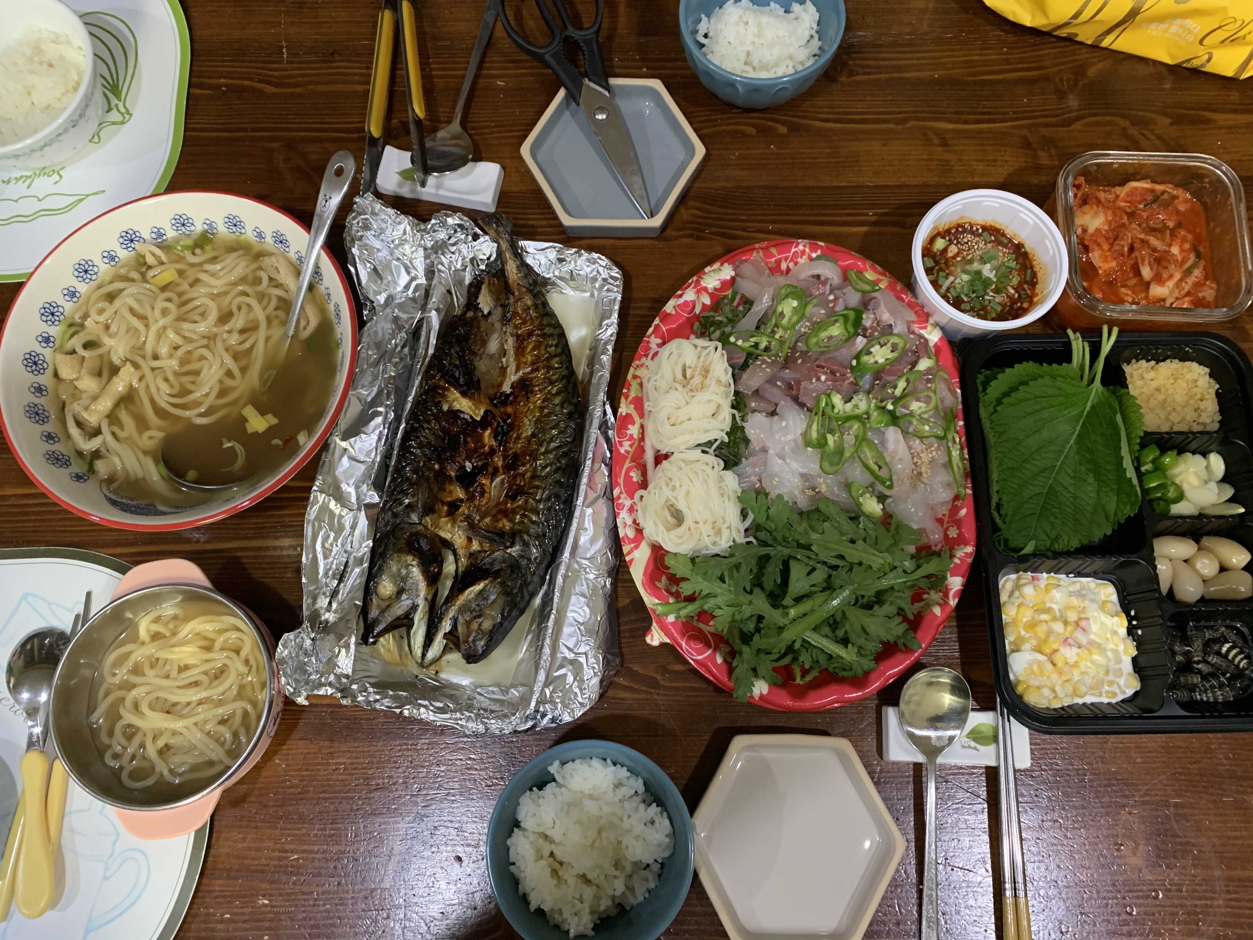 고등어 구이도 따뜻하게 식지 않게 오네요. 아이들 반찬으로도 굳! 회도 맛있지만 이 고등어 구이도 훌륭합니다.