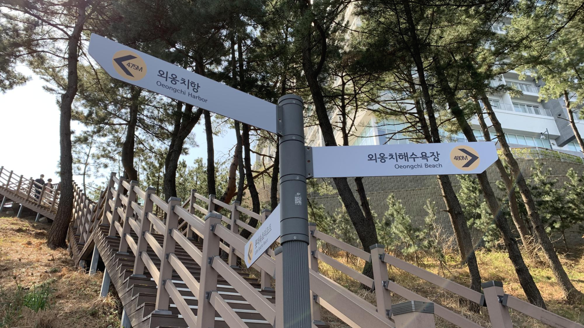 바다 위로 데크길이 나 있어 동해의 탁 트인 바다를 온 몸으로 느끼며 걸을 수 있습니다. 파도 소리와 살랑 부는 시원한 바람, 파란 하늘과 푸른 바다를 온몸으로 느낄 수 있습니다. 사잇길 곳곳에는 다양한 전망대와 벤치가 설치되어 멋진 인생사진을 찍을 수 도 있었어요. 외옹치 항과 외옹치 해변 사이에 있는 길이기 때문에 주차는 두 곳 모두에서 가능합니다. 경사가 높지 않은 데크길은 아이들이나 어르신 분들도 편하게 걸을 수 있습니다.