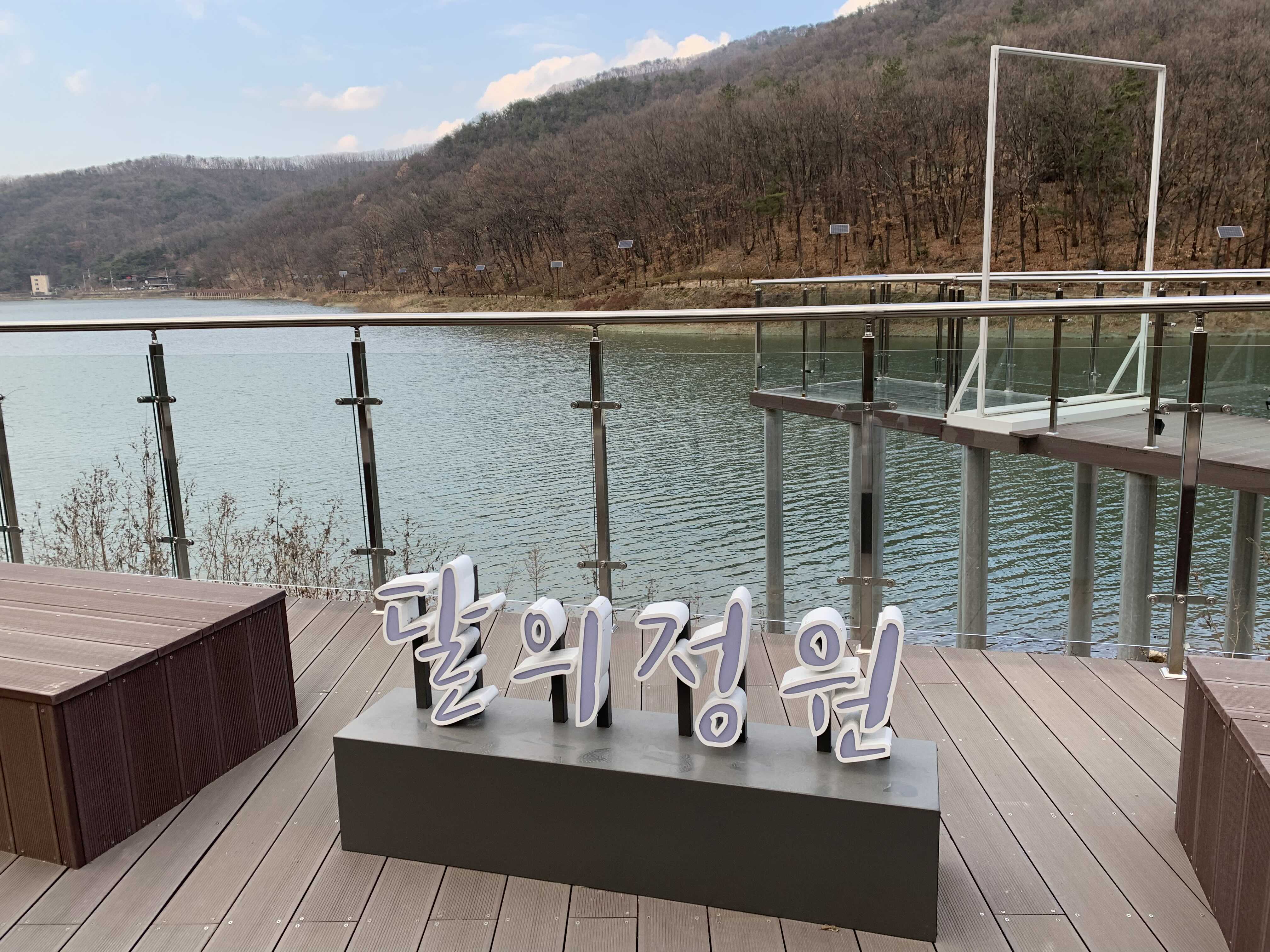곳곳에 인생샷 남길 포인트 들이 줄줄이 나오니 산책길을 따라 걷는 동안 지루하지가 않네요. 달의 정원이라고 하니 달이 밝게 뜬 날 호수에 비친 달빛이 예술일거 같다는 예상이 드네요. 포토존 구역에 도달하면 액자모양 사진포인트도 있어요.
